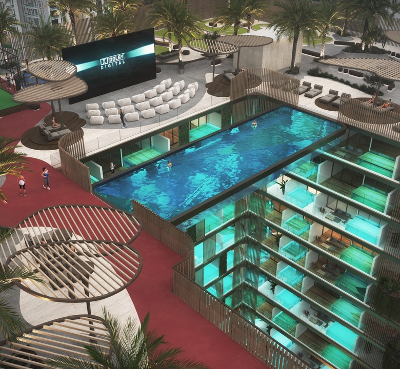 Fortunate Properties offers you luxurious 1-bedroom apartment Peace Lagoons, a newly unveiled residential gem, in the esteemed Dubai land Residence Complex (DLRC). With an innovative 17-story design and unmatched amenities, the façade sets a new benchmark for modern living in Dubai. Surrounded by lush greenery and sparkling lagoons, this residential retreat offers a tranquil oasis away from the city’s hustle and bustle.